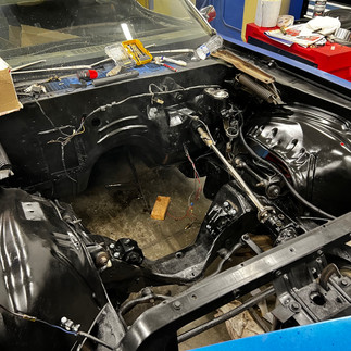 Things are moving right along. Once the motor mounts were in place for the LS, we wasted no time in checking where everything else was going to land. From steering, to exhaust, to how much clearnace we have to work with. Excited to start putting all the other bits back onto the engine and adding to the engine bay. Soon enough we will be ready for exhaust and making a driveshaft. Still have to run wiring and clean up the interior too.